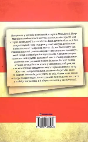 Дебютний роман австралійської письменниці Гізер Морріс про силу кохання, віри й внутрішнього спротиву, завдяки яким можна пройти крізь найтяжчі випробування. Книжку написано на основі реальних подій.