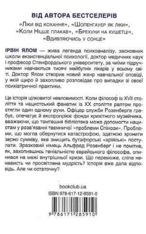 Факти і вигадка, пристрасть і огида, зобов’язання і свобода — драматичні події розгортаються напередодні зародження психоаналізу. Ця книга — фантазія автора про те, що було б, якби три найвизначніші особистості XIX століття зустрілися та почали надавати своєрідну психотерапевтичну допомогу один одному.