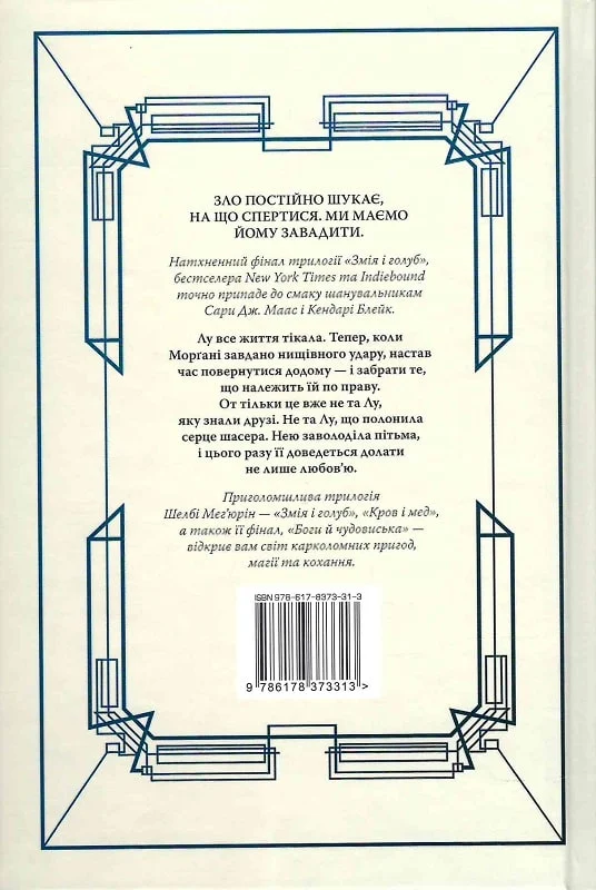 Приголомшлива трилогія Шелбі Мег’юрін — «Змія і голуб», «Кров і мед», а також її фінал, «Боги й чудовиська» — відкриє вам світ карколомних пригод, магії та кохання.