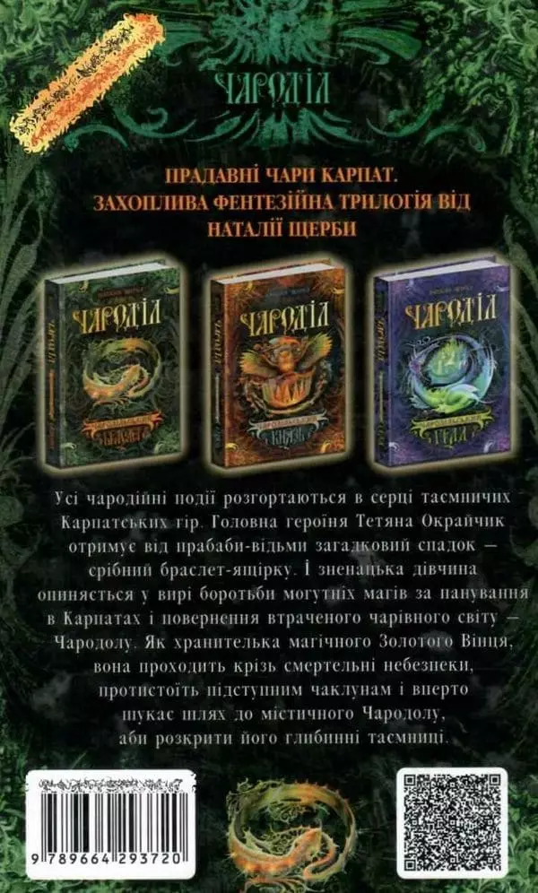 Усі чародійні події розгортаються в серці таємничих карпатських гір. Головна героїня Тетяна Окрайчик отримує від прабаби-відьми загадковий спадок срібний браслет-ящірку. І зненацька дівчина опиняється у вирі боротьби могутніх магів за панування в Карпатах і повернення втраченого чарівного світу Чародолу. Як хранителька магічного Золотого Вінця, вона проходить крізь смертельні небезпеки, протистоїть підступним чаклунам і вперто шукає шлях до містичного Чародолу, аби розкрити його глибинні таємниці.