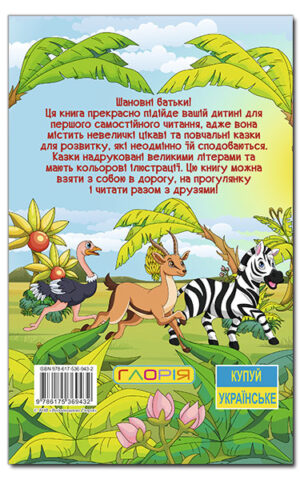 Ця книга прекрасно підійде вашій дитині для першого самостійного читання, адже вона містить невеличкі цікаві та повчальні казки для розвитку, які неодмінно їй сподобаються. Казки надруковані великими літерами та мають кольорові ілюстрації. Цю книгу можна взяти з собою в дорогу, на прогулянку і читати разом з друзями!