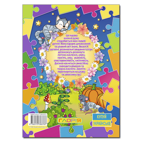 Вона відкриє дивовижний та цікавий світ знань. Веселі й дотепні, розвивальні завдання та ігри допоможуть розвинути логічне мислення, увагу, пам’ять, уяву, уважність, спостережливість, кмітливість. Дитина навчиться самостійно знаходити рішення та творчо мислити. Заняття перетворяться на цікаву та захопливу гру!