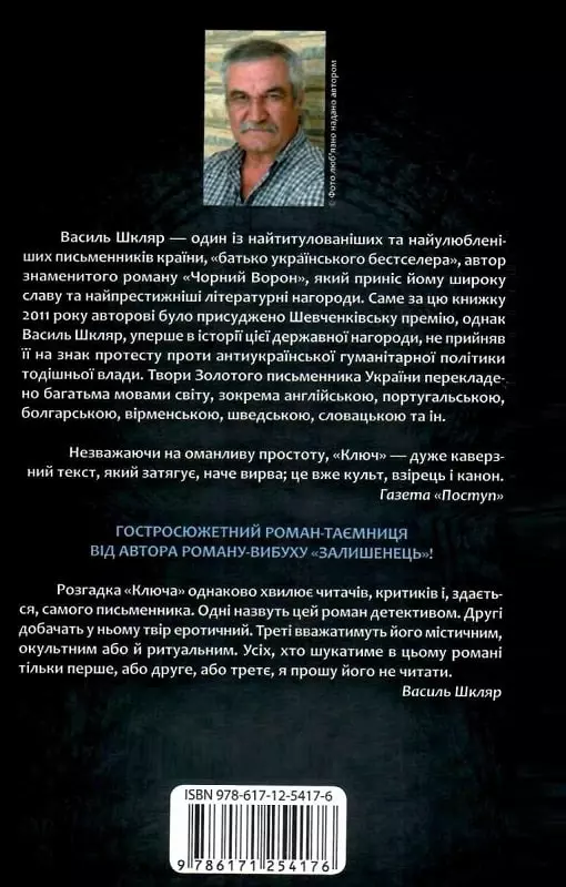 Василь Шкляр — один із найтитулованіших та найулюбленіших письменників країни, «батько українського бестселера», автор знаменитого роману «Чорний Ворон», який приніс йому широку славу та найпрестижніші літературні нагороди. Саме за цю книжку 2011 року авторові було присуджено Шевченківську премію, однак Василь Шкляр, уперше в історії цієї державної нагороди, не прийняв її на знак протесту проти антиукраїнської гуманітарної політики тодішньої влади. Твори Золотого письменника України перекладено багатьма мовами світу, зокрема англійською, португальською, болгарською, вірменською, шведською, словацькою та ін.