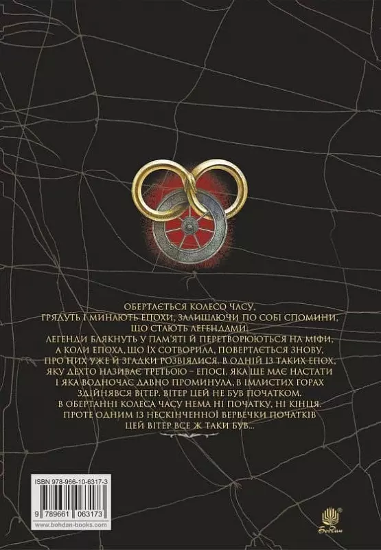 Що ж таке Колесо Часу? Уявіть собі величезну, завбільшки як космос прядку із семишпичним колесом, яке, повільно обертаючись, тче тканину всесвіту. Воно створює із життів і подій Великий Візерунок, що є минулим, теперішнім і майбутнім світу. І допоки обертається Колесо, нема кінця плетінню, і навіть смерть не є остаточною… Ось Колесо обернулося — і давні пророцтва про прихід Морока ожили. Чорна тінь Батька Брехні зависла над світом, а найперше над його крихітною частинкою — заґумінковим сільцем Емондів Луг. І ніхто з мешканців цього краю ще навіть не здогадується, що один із них — обраний. Принаймні так стверджує пророцтво. А пророцтва в цьому світі завжди справджуються.