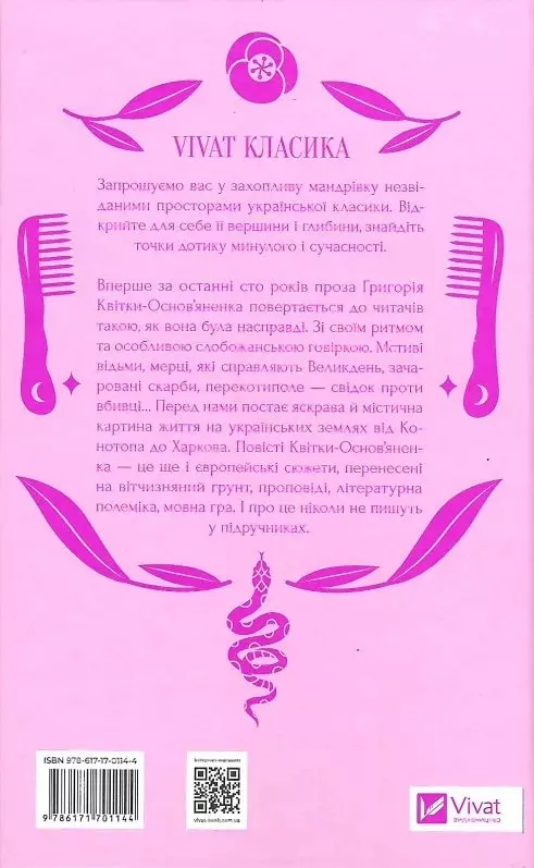 Вперше за останні сто років проза Григорія Квітки-Основ’яненка повертається до читачів такою, як вона була насправді. Зі своїм ритмом та особливою слобожанською говіркою. Мстиві відьми, мерці, які справляють Великдень, зачаровані скарби, перекотиполе — свідок проти вбивці… Перед нами постає яскрава й містична картина життя на українських землях від Конотопа до Харкова. Повісті Квітки-Основ’яненка — це ще і європейські сюжети, перенесені на вітчизняний ґрунт, проповіді, літературна полеміка, мовна гра. І про це ніколи не пишуть у підручниках.