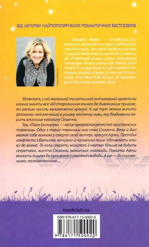 Здавалося, у цій маленькій та затишній антикварній крамничці можна знайти все – від старовинних книжок до дивовижних прикрас, які в минулому носили великосвітські красуні. А ще тут можна випити філіжанку найсмачнішої в усьому містечку кави, яку бездоганно варить власниця магазину Сюзанна. Так, “Пікок Емпоріум” – місце прекрасних речей та пристрасних таємниць. Одну з таких таємниць має сама Сюзанна. Вона й досі вважає себе винною у смерті своєї красуні-матері Афіни. Постійні конфлікти з батьком, мачухою й чоловіком лише підливають олії до вогню. Та коли секрети минулого її матері перестануть бути секретами, життя Сюзанни зміниться назавжди. Помилки Афіни вкажуть їй шлях до прощення й омріяної свободи. А ще – до справжнього, палкого кохання…