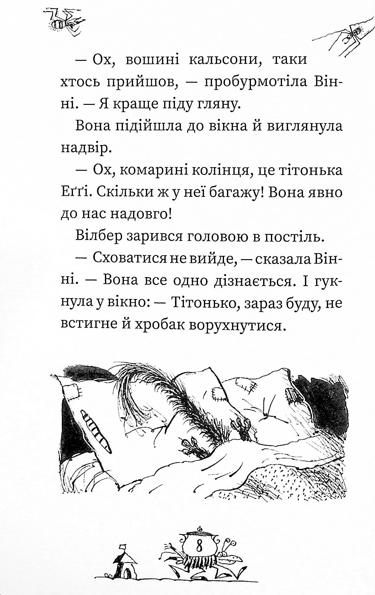 Перша книга серії «Вінні та Вілбер» від Лори Овен складається з чотирьох пригодницьких історій. Відьмочка Вінні та її улюблений чорний кіт Вілбер — головні герої цієї книжки.⠀ У відьмочкиі завжди багато справ: написати вірші, прибратися, приготувати вечерю для гостей. У цьому їй допоможе чарівна паличка, швидкісна мітла й вірний хвостатий друг – кіт Вілбер. ⠀ Книга «Крихітка Вінні» — чудовий варіант для самостійного читання: великий шрифт, захопливий сюжет й кумедні ілюстрації подарують справжнє задоволення від читання з перших рядків. На кожній сторінці небагато тексту, він вдало поєднується з малюнками, мова твору зрозуміла, адаптована для сприймання дітьми молодшого шкільного віку.