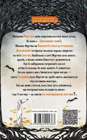 Напередодні Нового року на Покинутій віллі з’являється таємничий хлопчик-привид. Звідки ж він узявся? Саме це й намагається з’ясувати Мортіна, дівчинка-зомбі, та її вірний пес Смуток. Мортіна на все зважиться заради друга: і відірве собі руки-ноги, і викине голову у вікно, і прокрадеться в церкву, і навіть… сховається в труні. Страшно? Авжеж! Історія про Мортіну здобула світову популярність і перекладена понад 20 мовами.