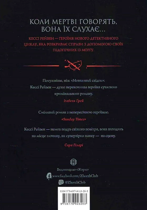 Санітарка моргу Кессі Рейвен звикла до того, що люди не розуміють її вибору професії. Невже немає іншого способу заробити на життя, ніж копирсатися в нутрощах померлих? Але ніхто не знає того, що знає Кессі: мертві можуть говорити. Вони прагнуть поділитися тим, що турбувало їх перед смертю. Рейвен бачила і «чула» сотні тіл, але це вперше на її робочому столі опинилася близька людина. Висновок патологоанатома — нещасний випадок, але померла з ним не згодна і підштовхує Кессі почати власне розслідування…