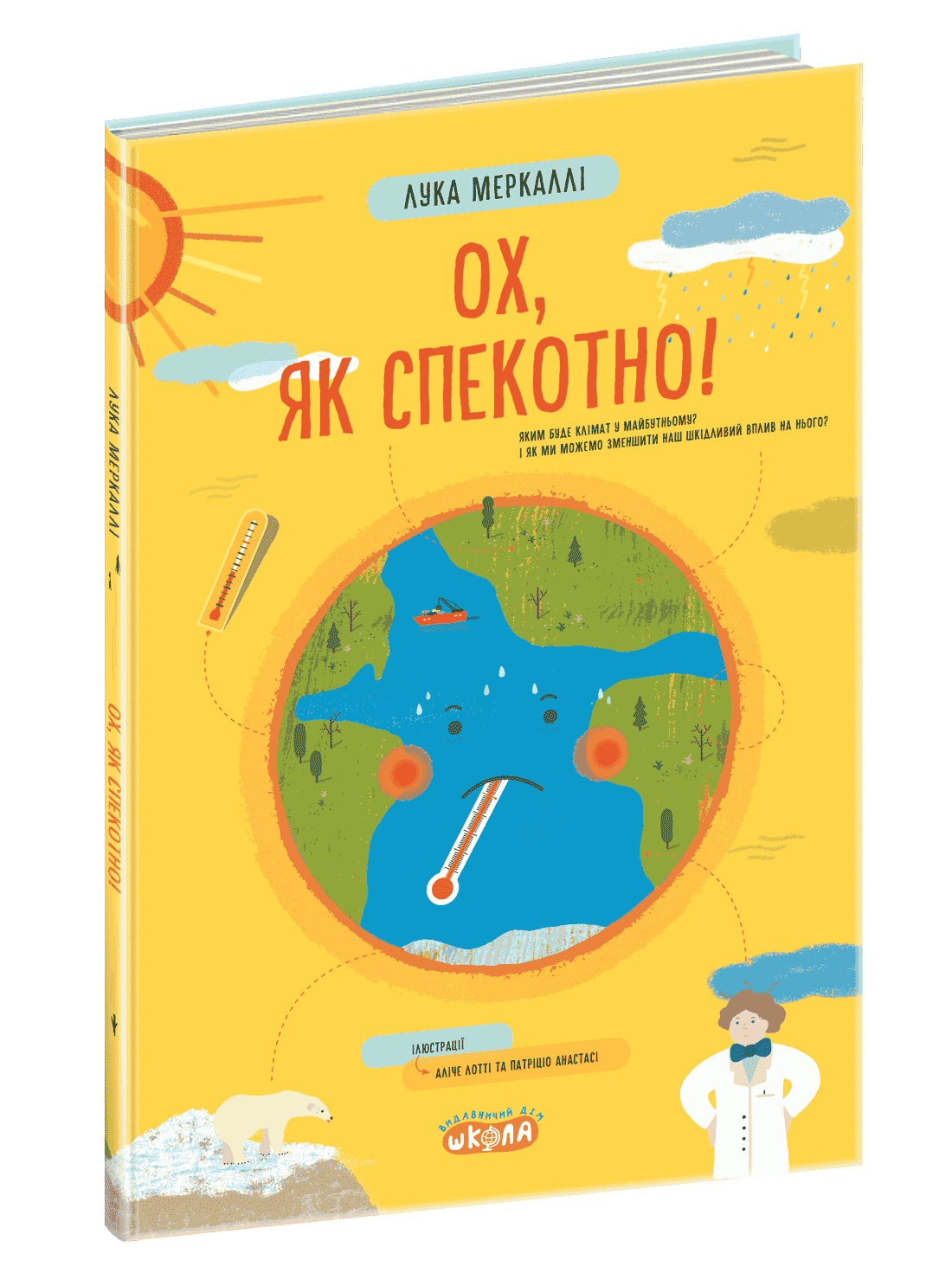 Видання Луки Меркаллі «Ох, як спекотно!» українською надасть відповіді про те, як піклуватися про довкілля, як виглядатиме наша планета через 80 років, на які чинники спираються науковці, коли прогнозують кліматичні зміни. Наразі Земля перегрівається через нераціональне використання природних ресурсів, забруднення довкілля та надмірне споживання енергії. Барвисті ілюстрації книги про глобальне потепління для дітей 9+ допоможуть побачити та запам’ятати назву вимірювальних приборів, що використовують для визначення вологості повітря та опадів, температури, швидкості вітру тощо. Автор книги «Ох, як спекотно!» президент італійського метеорологічного товариства Лука Меркаллі пояснить, що таке клімат та до чого призведуть його зміни, запропонує план по набуттю корисних звичок, а наприкінці книжки надасть екотест, що допоможе визначити рівень екологічної свідомості та інформацію про те, як його покращити.