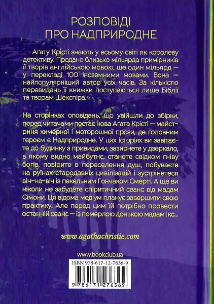 На сторінках оповідань, що увійшли до збірки, перед читачами постає нова Аґата Крісті — майстриня химерної і моторошної прози, де головним героєм є Надприродне. У цих історіях ви завітаєте до будинку з привидами, зазирнете у дзеркало, в якому видно майбутнє, станете свідком гніву богів, повірите в переселення душ, побуваєте на руїнах стародавніх цивілізацій і зустрінетеся віч-на-віч із пекельним Гончаком Смерті. А ще ви ніколи не забудете спіритичний сеанс від мадам Сімони. Ця відома медіум планує завершити свою практику. Але перед цим їй потрібно провести останній сеанс — із померлою донькою мадам Ікс…