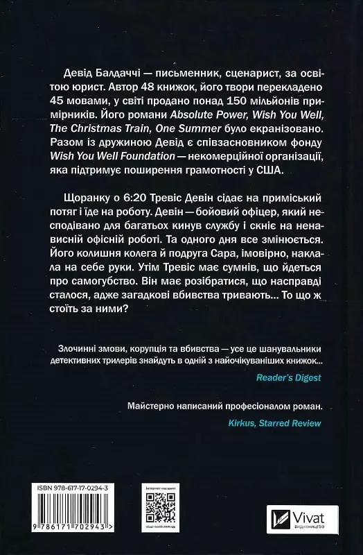• Любителям полоскотати нерви ця книжка теж припаде до смаку, адже на головного героя тут і там чекає небезпека. Тревіс Девін втрутився в те, у що не слід, а «сильні світу» цього не пробачають тих, хто так чи інакше потривожив їхні звичні справи. Погодьтеся, така життєва