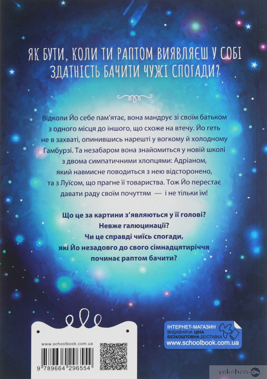 Відколи Йо себе пам’ятає, вона мандрує зі своїм батьком з одного місця до іншого, що схоже на втечу. Йо геть не в захваті, опинившись нарешті у вогкому й холодному Гамбурзі. Та незабаром вона знайомиться у новій школі з двома симпатичними хлопцями: Адріаном, який навмисне поводиться з нею відсторонено, та з Луїсом, що прагне її товариства. Тож Йо перестає давати раду своїм почуттям — і не тільки їм! Адже вона раптом виявляє у собі здатність бачити чужі спогади…