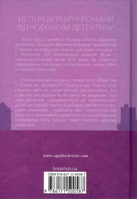 Аґату Крісті знають у всьому світі як королеву детективу. Продано близько мільярда примірників її творів англійською мовою, ще один мільярд — у перекладі 100 іноземними мовами. Вона — найпопулярніший автор усіх часів. За кількістю перевидань її книжки поступаються лише Біблії та творам Шекспіра.