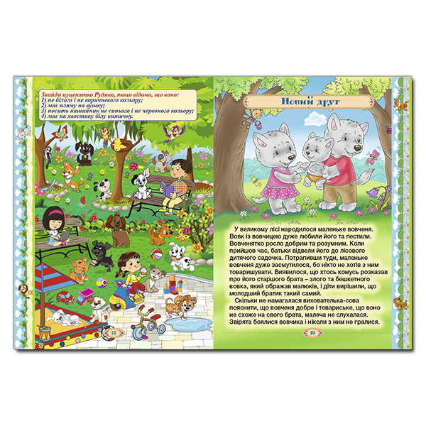 В цю збірку увійшли чудові казки, а також завдання та ігри для малюків, які допоможуть розвинути увагу, кмітливість та уяву. А тепер – сюрприз! Якщо швиденько перегортати сторінки книжки спочатку в одному напрямку, а потім – в іншому, то можна побачити, як оживають маленькі тваринки, намальовані по краю аркуша.