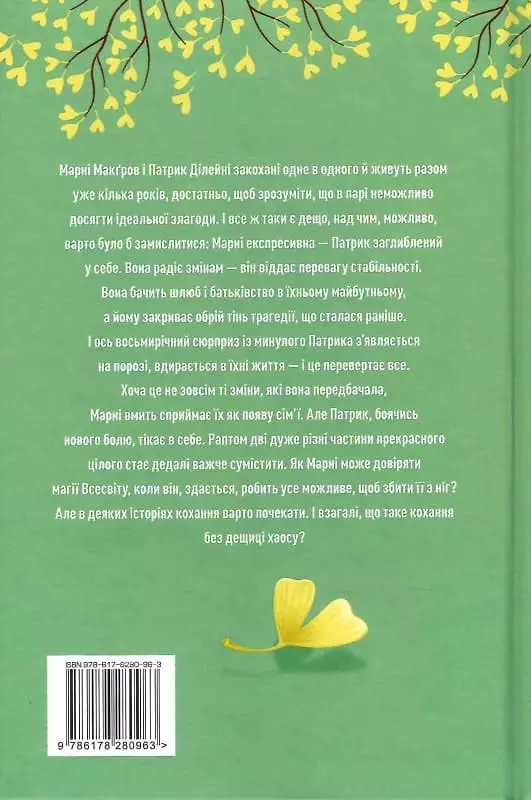 І ось восьмирічний сюрприз із минулого Патрика з’являється на порозі, вдирається в їхні життя — і це перевертає все. Хоча це не зовсім ті зміни, які вона передбачала, Марні вмить сприймає їх як появу сім’ї. Але Патрик, боячись нового болю, тікає в себе. Раптом дві дуже різні частини прекрасного цілого стає дедалі важче сумістити. Як Марні може довіряти магії Всесвіту, коли він, здається, робить усе можливе, щоб збити її з ніг?