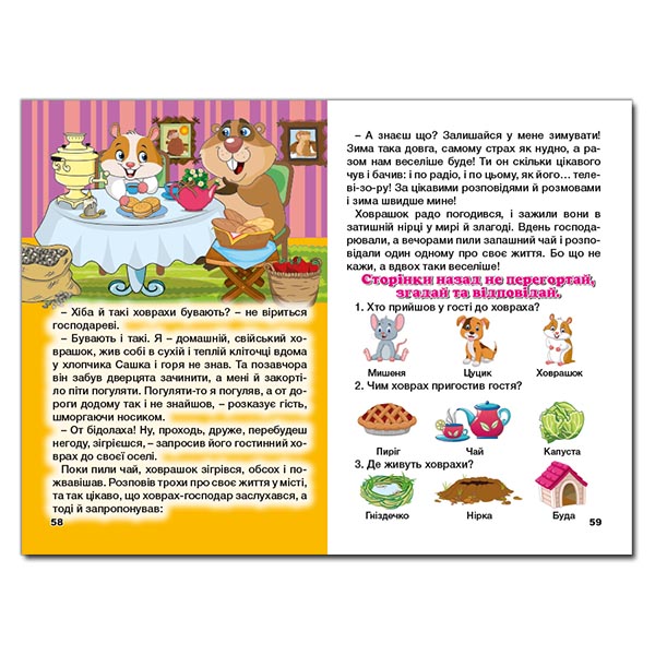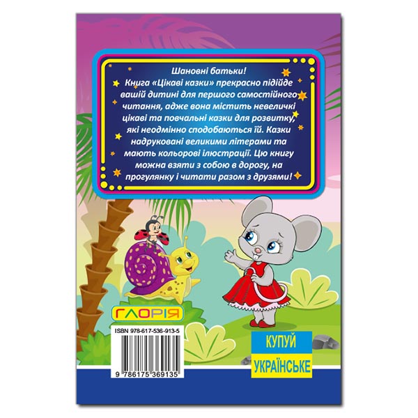 Книга «Цікаві казки» прекрасно підійде вашій дитині для першого самостійного читання, адже вона містить невеличкі цікаві та повчальні казки для розвитку, які неодмінно сподобаються їй