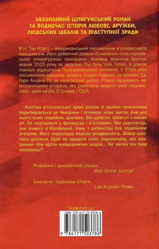Капітан в’єтнамської армії разом зі своїми співвітчизниками перебирається до Америки і починає нове життя. Але для нього воно — подвійне, дволике. Він шпигун. Шпигун змалечку, бо народився від француза і в’єтнамки. Він європеєць, але вчився у Каліфорнії, тому з малих літ був подвійним агентом. Його переслідує власна роздвоєність. Війна капітана — духовна. Аби не зрадити своїх переконань, він змушений піти проти найдорожчих людей… На чиєму він боці насправді?