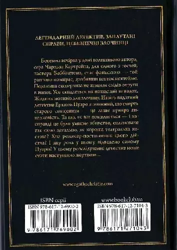 Подальша експертиза не виявляє слідів отрути в напої. Усе скидається на нещасний випадок. Жодних мотивів для злочину. Навіть видатний детектив Еркюль Пуаро впевнений, що смерть старого священика — це лише прикра випадковість. Та що, як він помиляється — і насправді це було умисне вбивство, сплановане так само детально, як хороша театральна вистава? Хто режисер-постановник цього дійства? І яка роль у ньому відведена самому Пуаро? У цьому розслідуванні детектив може стати наступною жертвою…