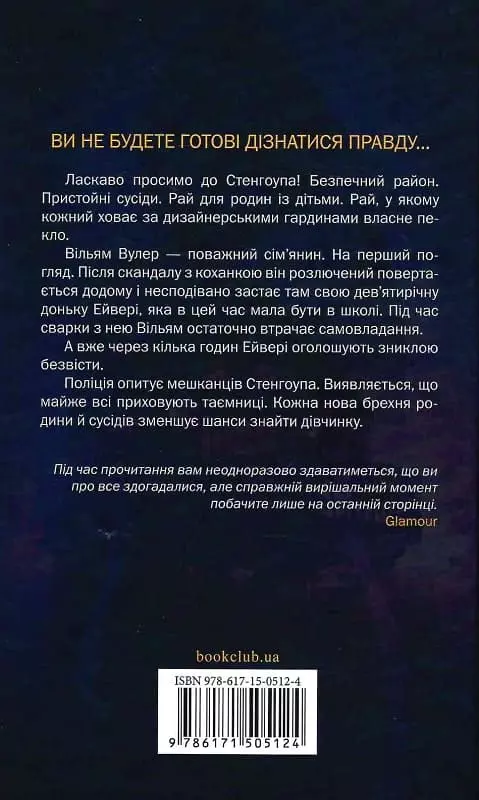 Ласкаво просимо до Стенгоупа! Безпечний район. Пристойні сусіди. Рай для родин із дітьми. Рай, у якому кожний ховає за дизайнерськими гардинами власне пекло.