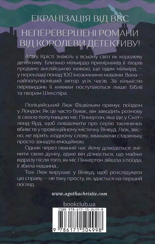 Поліцейський Люк Фіцвільям прямує поїздом у Лондон. Як це часто буває, він заводить розмову зі своєю попутницею міс Пінкертон, яка їде у Скотленд-Ярд, щоб повідомити про серію таємничих вбивств у провінційному містечку Вічвуд. Люк, звісно, не вірить жодному слову, вважаючи стареньку просто занадто емоційною.
