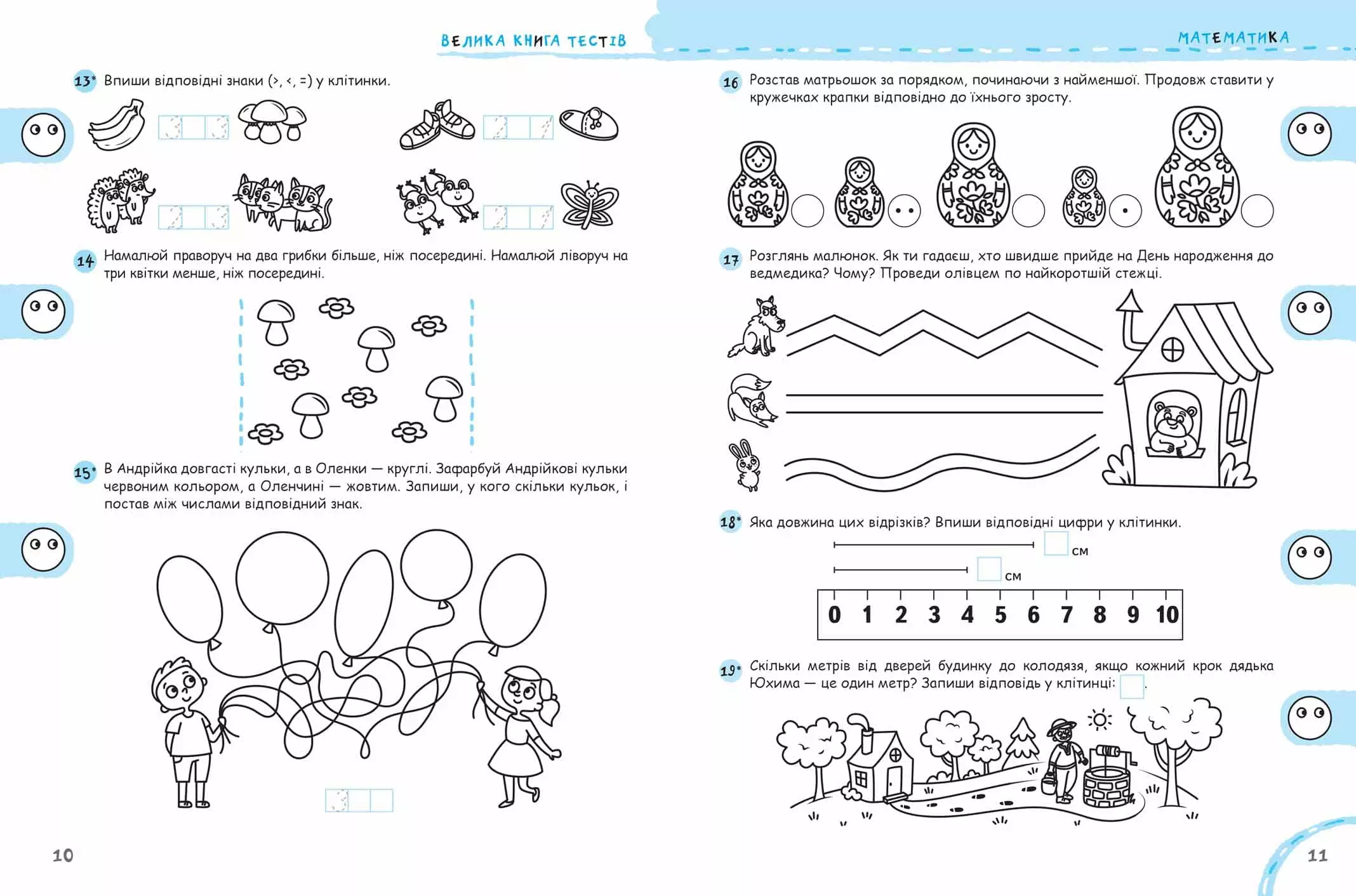 Усі ми знаємо, що тестування дитини під час вступу до школи не передбачене чинними законодавчими нормами. Але це на папері. На практиці ж тестування буде обов’язковим етапом під час вступу до гімназії або ж просто до престижної школи. Більше того, те саме тестування, тільки під назвою «співбесіда», швидше за все, буде запропоноване дитині під час вступу до будь-якого навчального закладу… Під час добирання завдань для цієї збірки використовувалися матеріали й вимоги чинних програм для виховання та розвитку дітей у дошкільних закладах. А найголовніше — реальні тестові завдання, які широко застосовуються під час співбесід із дітьми, що вступають до школи.