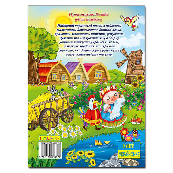 Пропонуємо Вашій увазі книжку. Найкращі українські казки з чудовими малюнками допоможуть дитині легко, граючись, навчитись читати, рахувати, думати та міркувати. В цю збірку увійшли найкращі українські казки, а також завдання та ігри для малюків, які допоможуть розвинути увагу, кмітливість та уяву.