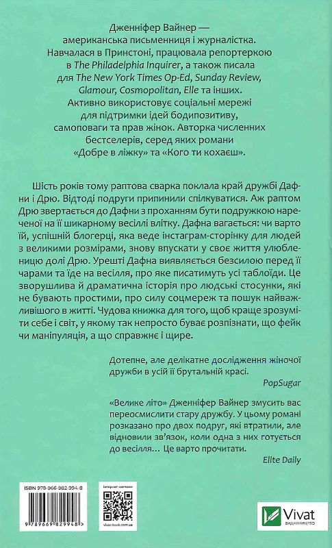 “Велике літо” Дженніфер Вайнер — це не тільки історія про відновлення дружби, але і глибока рефлексія над сучасним світом, соціальними мережами і важливістю чесності в стосунках.