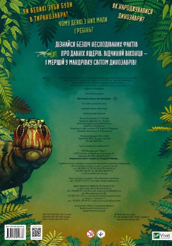Чи великі зуби були в тиранозавра? Як народжувалися динозаври? Чому деякі з них мали гребінь? Дізнайся безліч несподіваних фактів про давніх ящерів. Відчиняй віконця — і мерщій у мандрівку світом динозаврів!