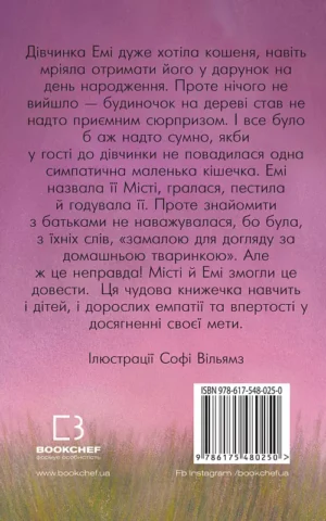 Дівчинка Емі дуже хотіла кошеня, навіть мріяла отримати його у дарунок на день народження. Проте нічого не вийшло — будиночок на дереві став не надто приємним сюрпризом. І все було б аж надто сумно, якби у гості до дівчинки не повадилася одна симпатична маленька кішечка.