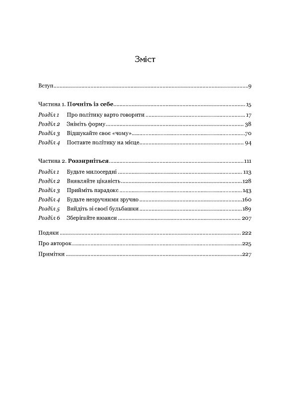 Сара і Бет разом навчалися в університеті, тож знайомі давно. Попри дружбу, вони — прихильниці цілком різних політичних ідеологій. Але в цій книжці доводять — суспільно важливі теми повинні вирішуватися лише в умовах взаємоповаги та з врахуванням спільних інтересів, а не з позиції протистояння різних політичних сил. І на власному прикладі покажуть, як саме варто вести здорові політичні дискусії про медицину, освіту, права жінок тощо.