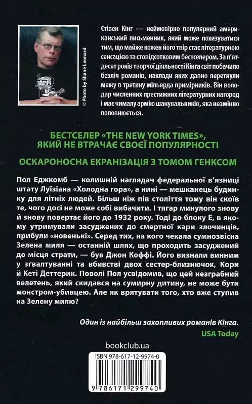 Тоді до блоку Е, в якому утримували засуджених до смертної кари злочинців, прибули «новенькі». Серед тих, на кого чекала сумнозвісна Зелена миля — останній шлях, що проходить засуджений до місця страти, — був Джон Коффі. Його визнали винним у зґвалтуванні та вбивстві двох сестер-близнючок Кори й Кеті Деттерик. Поволі Пол усвідомлює, що цей незграбний велетень, який скидався на сумирну дитину, не може бути монстром-убивцею. Але як врятувати того, хто вже ступив на Зелену милю?