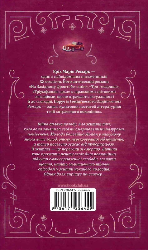 Еріх Марія Ремарк — один з найвідоміших письменників ХХ століття. Його антивоєнні романи «На Західному фронті без змін», «Три товариші», «Тріумфальна арка» є справжніми світовими сенсаціями, що не втрачають актуальності й до сьогодні. Поруч із Гемінґвеєм та Олдінґтоном Ремарк — одна з культових постатей літературної течії «втраченого покоління».