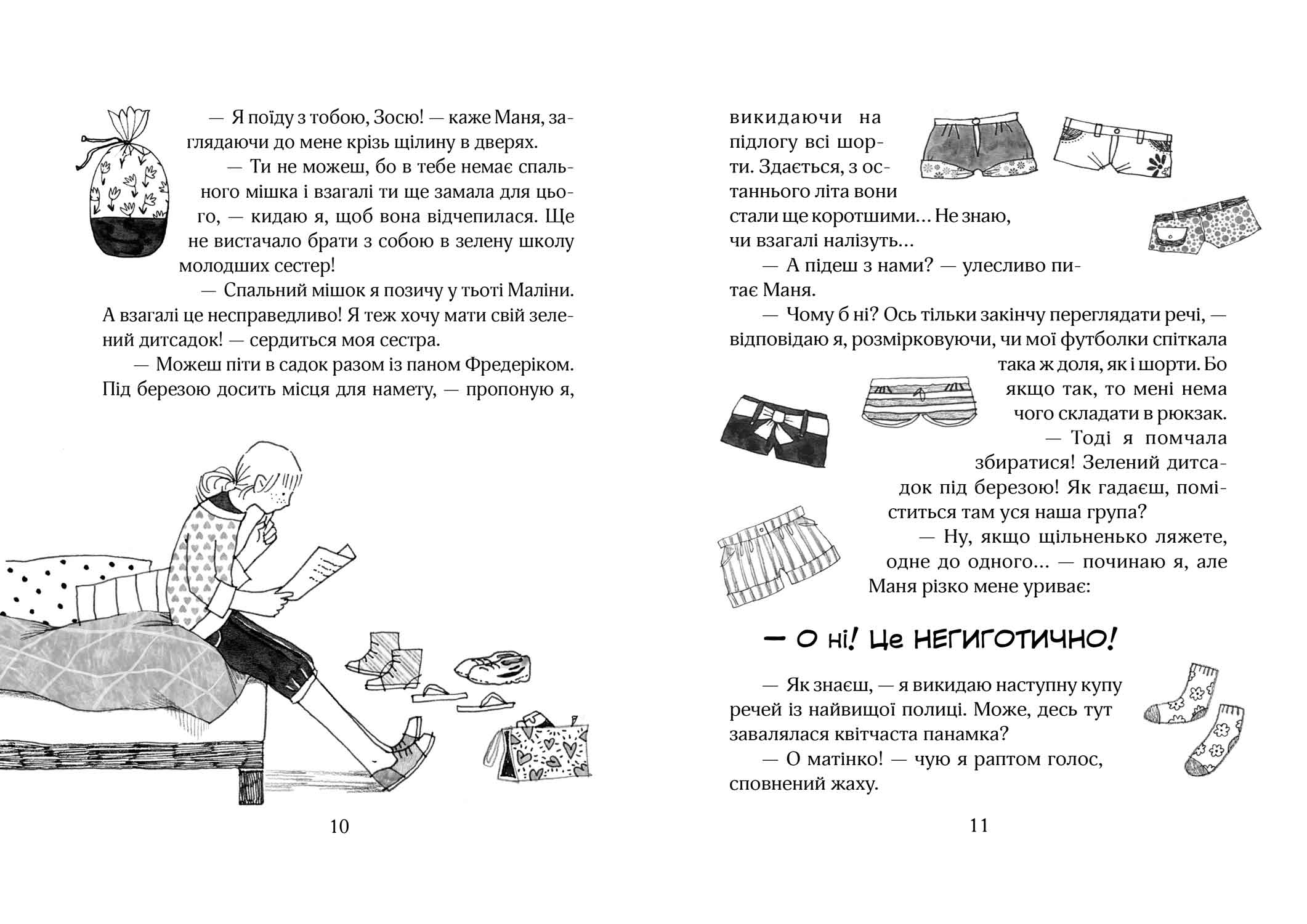 Цього разу Зося залишає вулицю Котячу і вирушає назустріч пригодам у дитячий табір чи, точніше, у зелену школу! А пригод на неї чекає чимало — Зося купуватиме гумові чоботи для метелика, якого звуть АГМІРАЛ ПИПЕК, отримає у подарунок кролика, вивчатиме біорізноманіття на Мазурських озерах, де зустріне Нічного Койота і ПРИВИДА, скупається у ВЕЛИЧЕНЬКІЙ калюжі та врятує усіх завдяки своїй РЯТУВАЛЬНІЙ ТОРБІ!